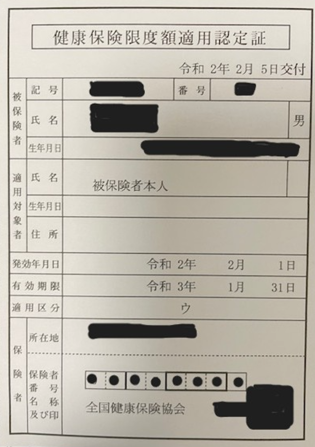 支払いを行った後からでも申請すれば、上限を超えた金額は指定の口座に振り込まれまれると説明がありました。その後すぐに「健康保険限度額適用認定証」を申請しました。