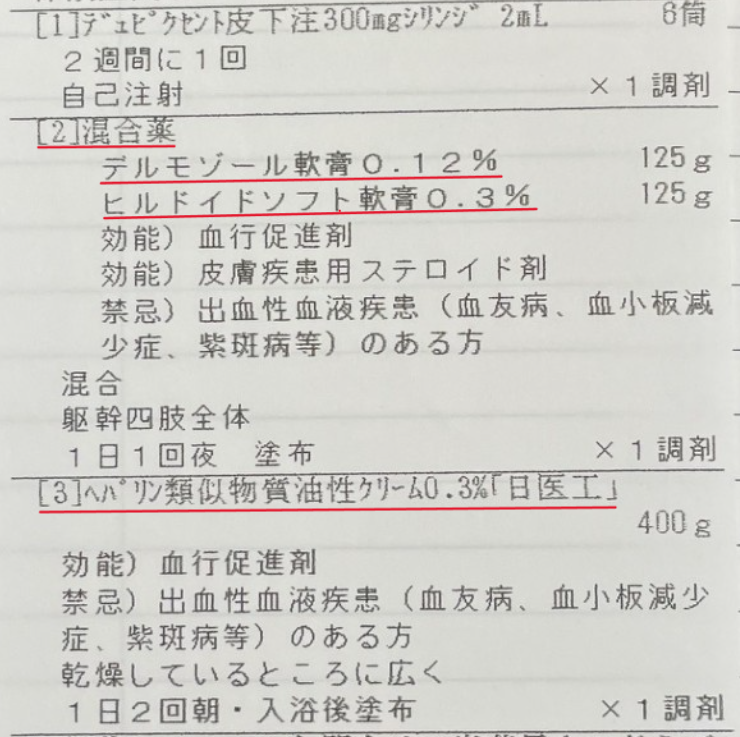 保湿剤とステロイドを調合したものと保湿剤を使用していました。